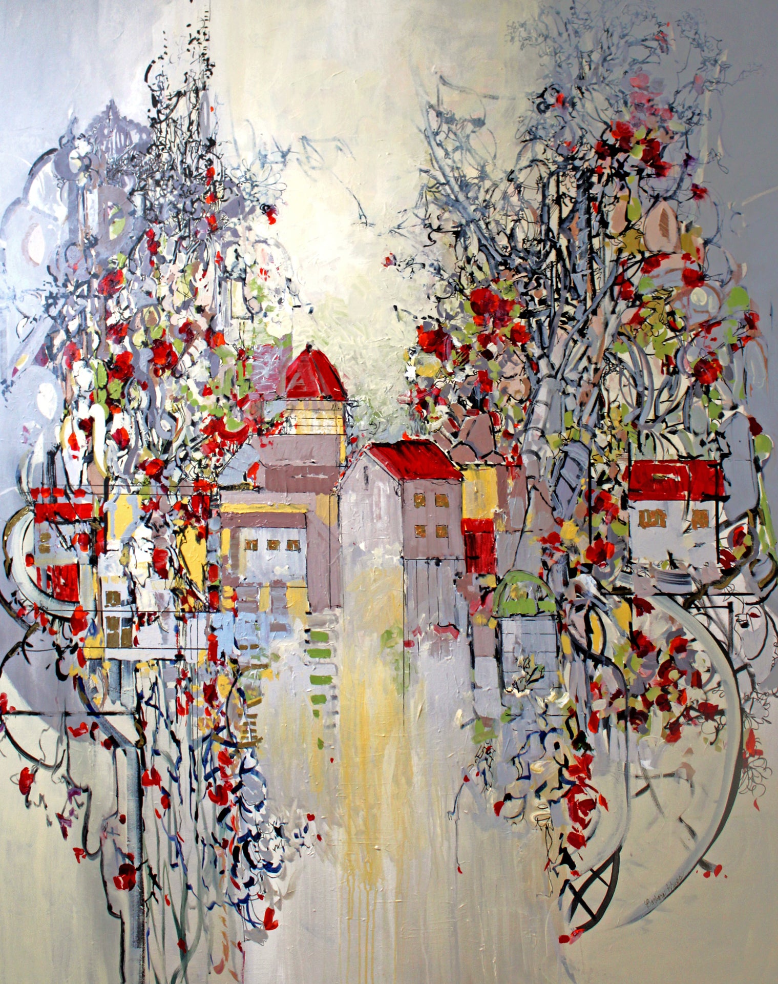 An original acrylic painting, gallery wrapped and painted on all sides, wired and ready to hang.